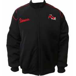 Blouson Vespa Racing. Pour tous les passionnés de moto, et les inconditionnels de la marque Vespa. Blouson moletonné de catégorie hardshell, coupe-vent et déperlant, fabrication 100% polyester.
