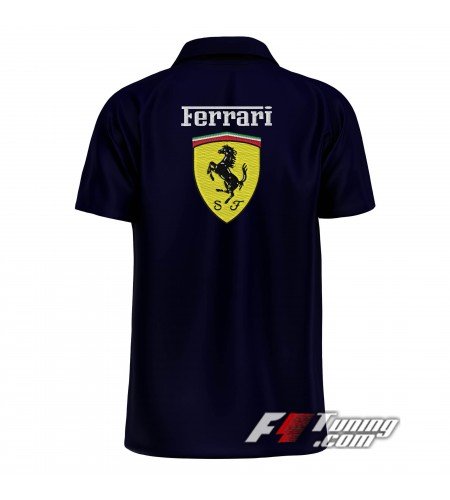Polo Ferrari Team pour homme de couleur bleu nuit. Pour tous les passionnés de Formule 1, qui souhaitent afficher leur passion avec le Polo officiel porté par l’équipe Ferrari dans le paddock.