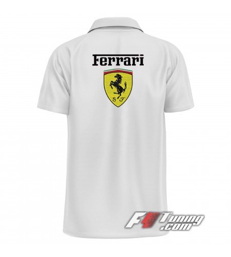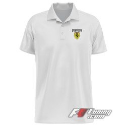 Polo Ferrari Team pour homme de couleur blanc. Pour tous les passionnés de Formule 1, qui souhaitent afficher leur passion avec le Polo officiel porté par l’équipe Ferrari dans le paddock.